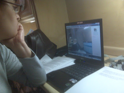 Aliza at work (and out of her pajamas).